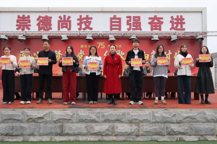 校团委负责人刘雪琳为获奖学生颁奖