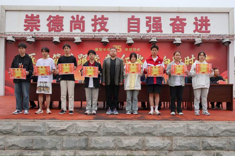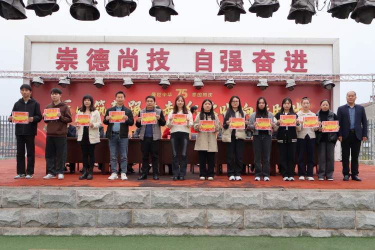 政教处主任黄庆锋为获奖学生颁奖
