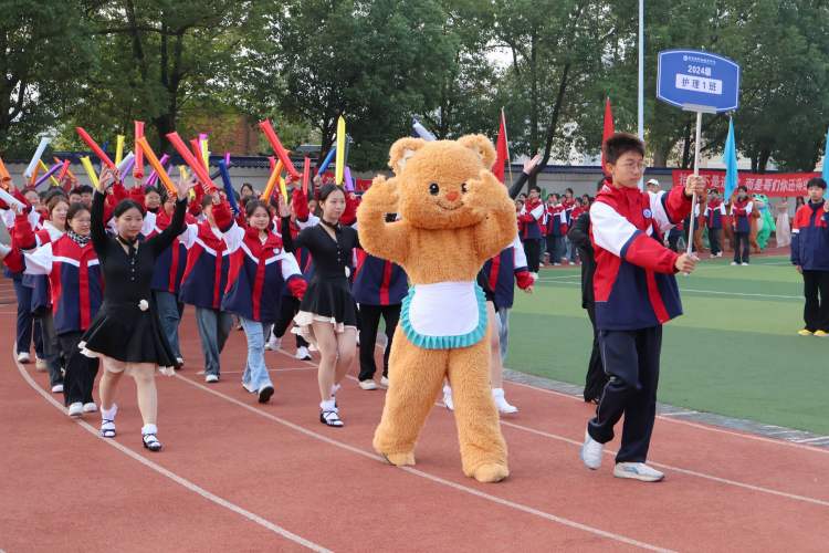 开幕式入场式上,国旗、校旗、彩旗方阵与37个班级特色方阵先后出场。各班方阵别具一格、形式多样、个性张扬、精彩纷呈的创意入场“有味”“有趣”“有料”,引发了现场无数的欢笑和掌声,充分展示了新时代中职学子昂扬向上、自信自强的精神风貌和团结、友谊、进步的运动精神。
